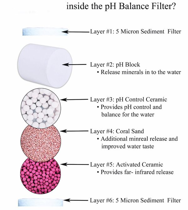 The alkaline filter changes the acidic RO water into a perfect natural alkali calcium ionized water. Gives back minerals such as ionized calcium, magnesium, sodium, potassium. Normally removed by reverse osmosis, now replaced for healthier water emit Far Infrared Rays, increases pH, lowers ORP, and gives your water a refreshing mineral flavor.