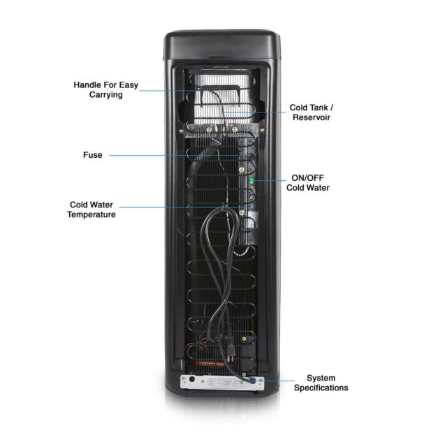 PRODUCT FEATURES; Room Temperature & Cold Bottleless Water Dispenser w/ overflow backup shut off protection (Dual back-up shut-off floats), removable dishwasher safe components, i.e. drip tray, faucets, baffle, float assembly.